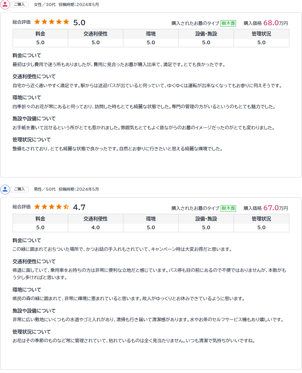 将来の合祀もなく維持管理費もかかりませんので、